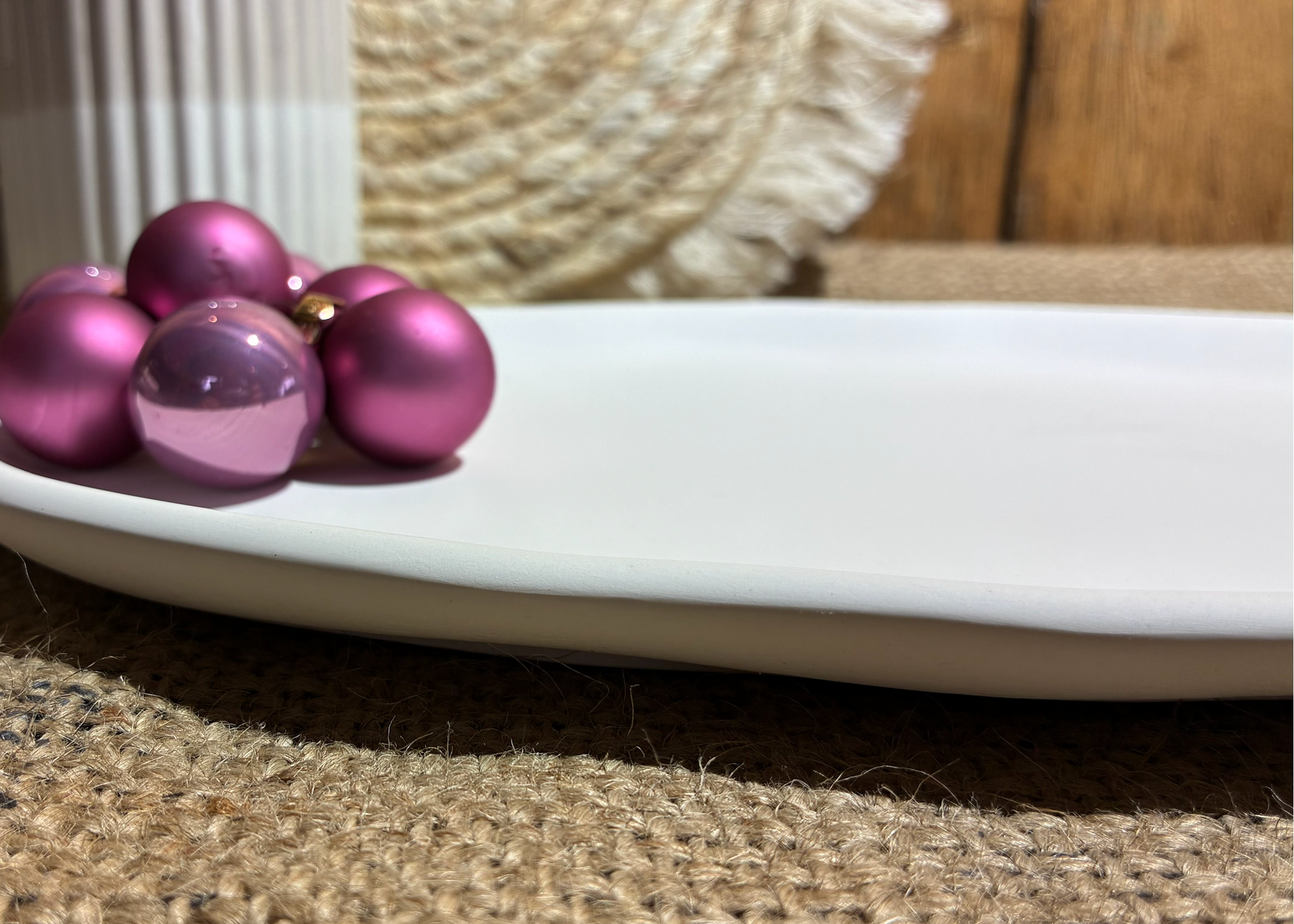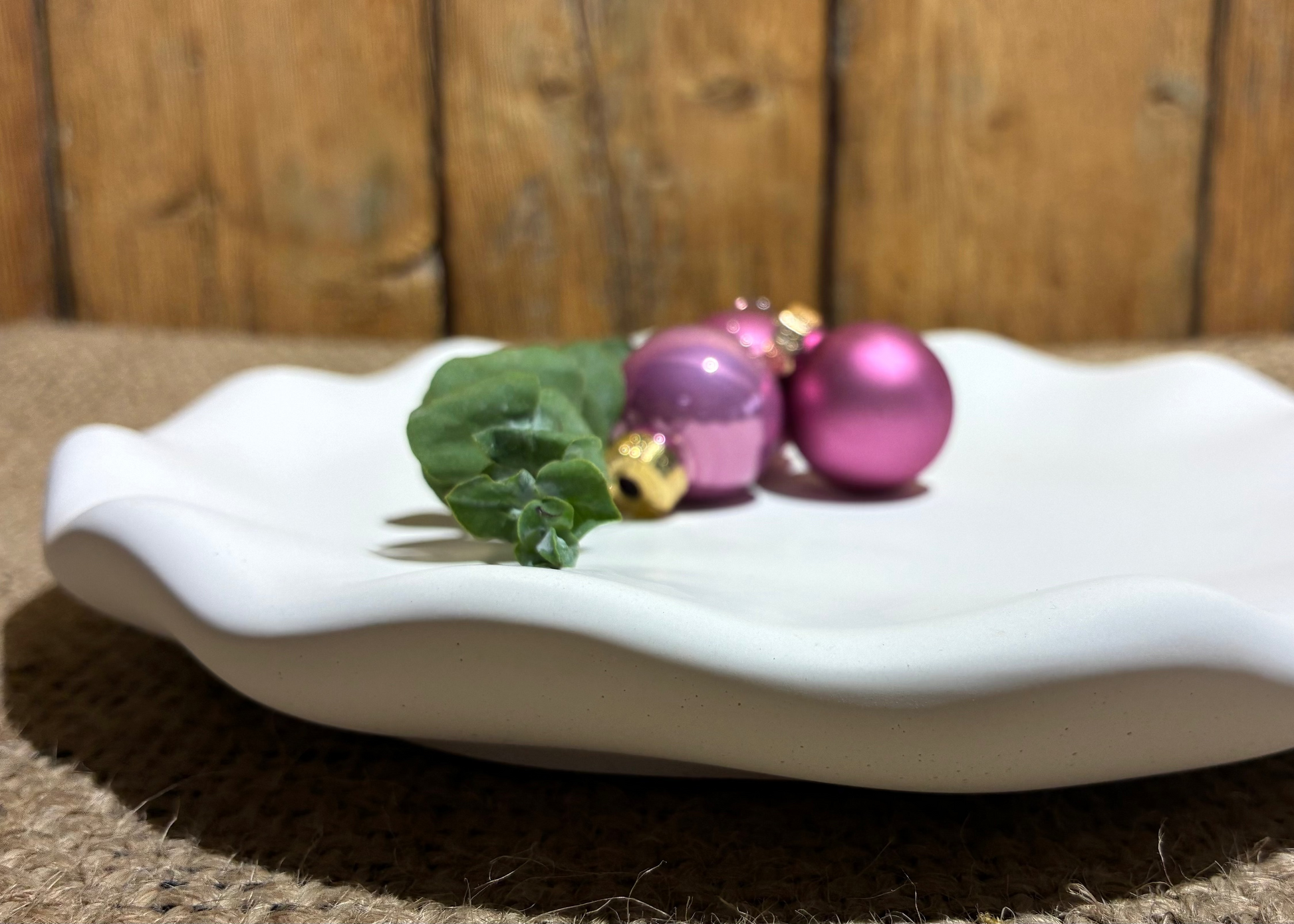 Ein schlichtes Lieblingsstücke für jede Jahreszeit. Diese handgegossenen Dekoteller überzeugen mit ihrer natürlichen, organischen Form und dem matten Weißton. Ihr Design und die dicke unterstreichen die Hochwertigkeit dieser Teller. Perfekt, um Kerzen, Trockenblumen oder kleine Deko-Arrangements stilvoll in Szene zu setzen. Oder als Teller/ Platte für deinen nächsten Brunch mit Freunden.